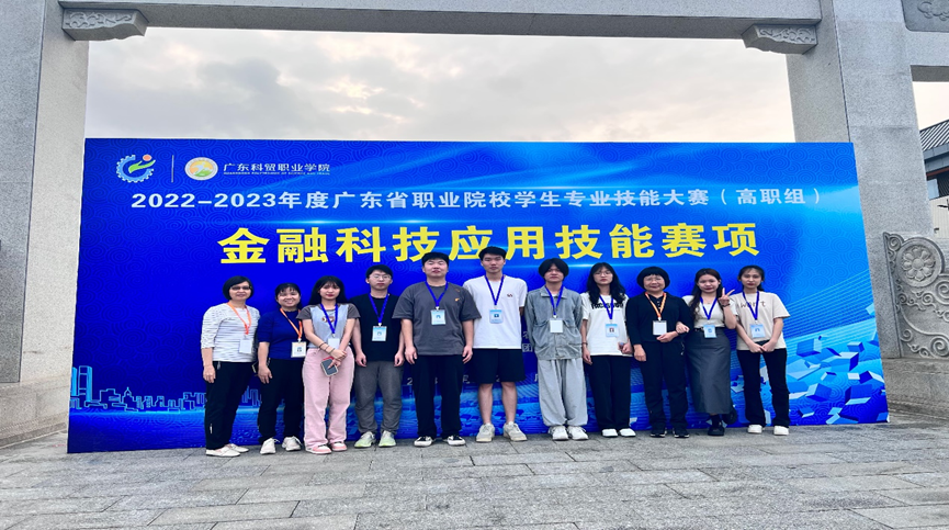 4月22日,2022-2023年度广东省职业院校学生专业技能大赛(高职组)金融科研应用技能赛项在广东科贸职业学院顺利开赛,威廉希尔官网工商管理学院金融科技应用专业8名学生在金融科技应用专业负责人叶方方老师及江暮红教授、袁年英副教授带领下参加该项比赛。