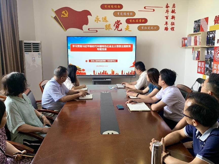 为学习贯彻习近平新时代中国特色社会主义思想主题教育,6月15日下午2点30分机电工程学院教师第一党支部在1区217党员活动室召开专题党课学习研讨会,教师第一党支部全体党员参加会议,会议由党总支书记邵超城主持。