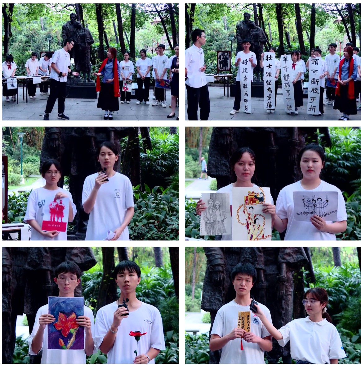 活动当天,师生先参观了广州起义烈士陵园,听取了革命历史的讲解,了解了广州起义的策划和发动,以及革命烈士为革命事业勇猛舍生的事迹,深刻认识到伟大的中国革命历程。之后,学生来到“刑场上的婚礼”雕像前,以角色演绎、书法、剪纸、书签、漫画等形式,探寻英雄故事,感悟中国革命道德。