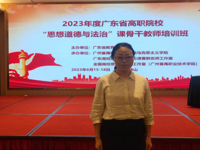 根据《广东省教育厅办公室关于举办 2023 年高校思想政治理论课骨干教师培训班的通知》等文件精神和学院安排,马克思主义学院教师魏银立、毛玲、张薇薇于2023年6月9日-11日参加了2023年度广东省高职院校“概论”课骨干教师培训班;张薇薇于2023年6月16日-18日参加了2023年度广东省高职院校“思想道德与法治”课骨干教师培训班。