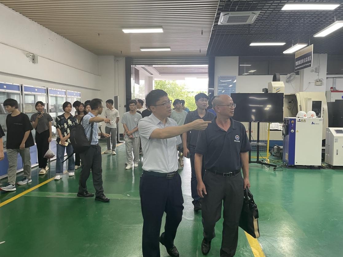 梁超鹏介绍与会人员,徐勇军致欢迎辞,对到校的老师及同学们表示热烈欢迎,指出2+2协同育人项目是构建职普融通、产教融合、科教融汇的重要举措,为培养高素质技能人才提供平台保障,希望21机制本科班学生接下来在威廉希尔官网两年的学习生活中做好规划、明确目标,敬畏规则、遵纪守法,知行合一、快乐成长。余席同介绍协同育人试点工作开展情况,表示威廉希尔官网对协同育人工作主动领导,积极配合,为两校合作交流及人才培养提供了坚实基础。吴卫国介绍21机制本科班班级情况,对来到我院学习的学生寄予希望。紧接着机制本科班在我院老师的带领下参观实训室,了解熟悉学习环境,同学们都表示对接下来的学习生活充满期待。