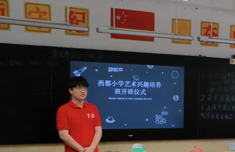 接着,西都小学校长蔡维强校长感谢上级团组织的大力支持促成今年“三下乡”暑假支教活动,诚挚欢迎老师和同学们积极响应号召,深入农村开展形式多样的志愿服务活动,不仅为促进地方教育发展作出了积极的贡献,而且在实践中受到了教育、增长了才干,也期望西都小学的学子们能在此次“美育”中认真学习,学有所成。