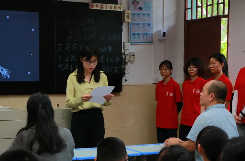 首先,团湘桥区委书记陈晴婴讲述此次活动能够让乡村孩子接触到更多的知识,触发艺术类教育和体操类教育的兴趣。她表示,青年学生要为党育人、为国育才,履行社会主义建设者和接班人的职责,青年学生要以服务党和国家发展大局为实践使命把自身专业特长和学业本领转化为服务人民、服务乡村、服务国家的实践行动。
