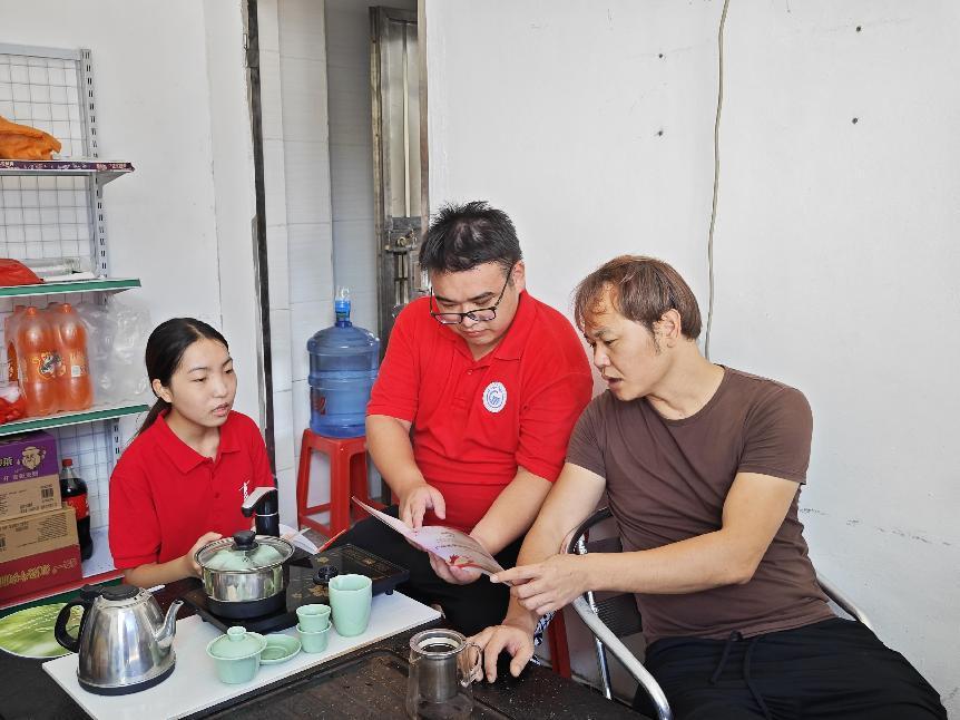 当天下午,为了扩大国家资助政策的宣传力度,“梦想起航”社会实践服务队在湴湖村通过家访的形式入户宣传政策,做到“户户知晓,人人明白”,向学生家长了解孩子家庭情况、宣讲国家资助政策、派发资助爱心扇,让家长和学生坚信国家的力量,激励学生拼搏人生。