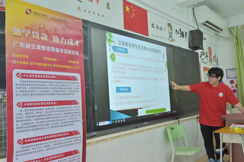 当天上午,“梦想起航”社会实践服务队在湴湖村活动中心开展了以“助学贷款,助力成才”为主题的宣讲课,将主题内容通过课件在课堂上进行讲解,并且分发《国家贫困生资助政策简介》,让学生深入了解国家学生资助政策,助力学生成长成才。