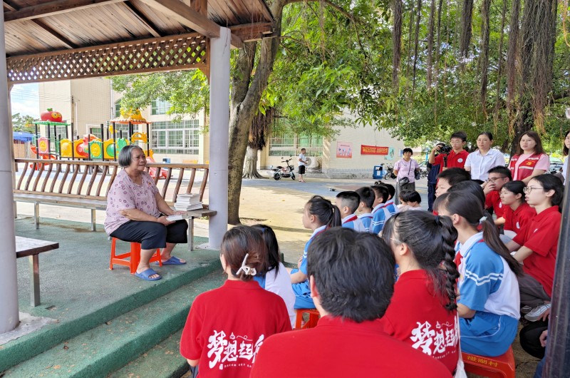 为充分了解先辈的革命传统,学习并发扬党的优良传统和作风,弘扬红色精神,“梦想起航”三下乡社会实践服务队开展了“百年榕树忆初心”宣讲活动。老党员高丽梅来到湴湖村,为队员和小朋友们上了一堂生动鲜活的党课,退休老党员结合自身的经历,追寻过去的峥嵘岁月,感受老一辈党员的坚毅精神,进一步宣传党的高尚品格与激情,促使新一代青年坚定永远跟党走的决心,肩负起民族复兴和国家复兴的重任。