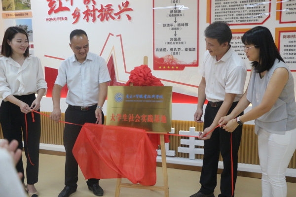 为深入学习习近平新时代中国特色社会主义思想和党的二十大精神,认真学习贯彻中央视察广东省重要讲话精神,落实广东省委关于“百县千镇万村高质量发展工程”的工作部署,7月24日,机电工程学院“韶华”三下乡服务活动即将结束,值此之际,williamhill威廉希尔官网机电工程学院与红丰镇开展校地共建合作,在红丰镇党群服务中心暨乡村振兴人才驿站进行大学生社会实践基地挂牌仪式。共青团阳江市阳东区委书记关丽娜,红丰镇委书记谭洛、红丰镇委副书记、红丰镇驻镇帮镇扶村工作队队长杨坤钢,红丰镇“两新”企业代表,机电工程学院党总支副书记梁超鹏、学院团委书记严惠琴、学院壹肆肆零工作室负责人邵盼盼、学院青协会长李晓玲和机电工程学院“韶华”三下乡服务队学生代表参加活动。红丰镇委委员冯国战主持活动。
