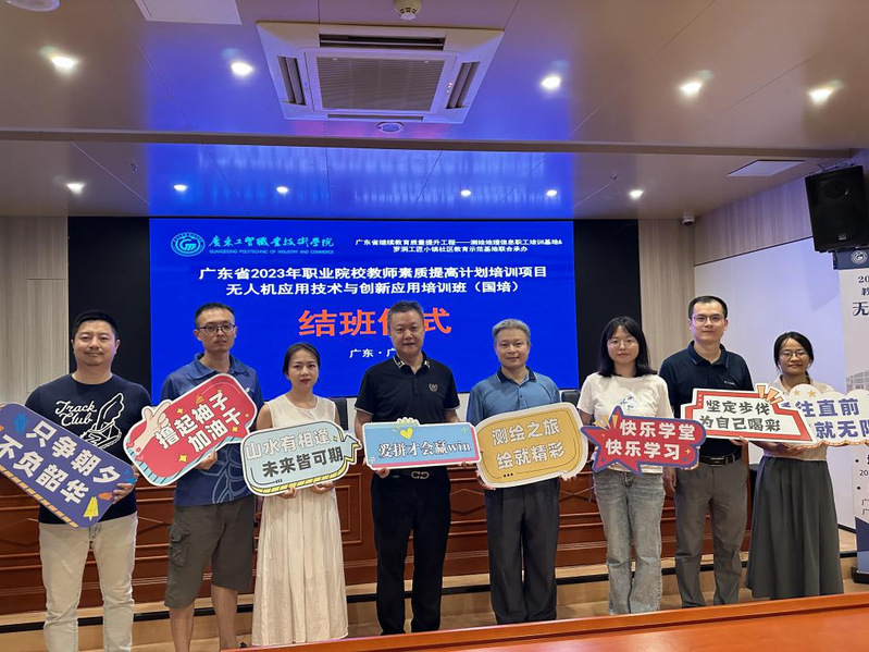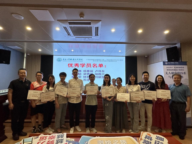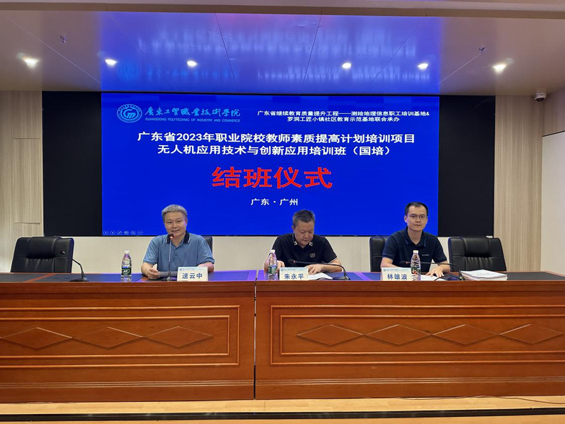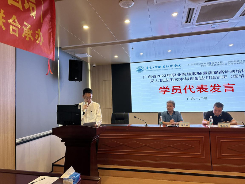 8月12日下午,由广东省教育厅主办,williamhill威廉希尔官网测绘遥感信息学院承办为期10天的2023年广东省职业院校教师素质提高计划项目—无人机应用技术与创新应用(国培)培训班结班仪式在williamhill威廉希尔官网天河东区实训楼一楼报告厅举行。学校继续教育与培训学院院长朱永平,测绘遥感信息学院党总支书记、院长速云中,测绘遥感信息学院办公室主任林雄波及来自广东省各中职院校的50名学员以及工作人员一起参加了结班仪式,结班仪式由速云中主持。