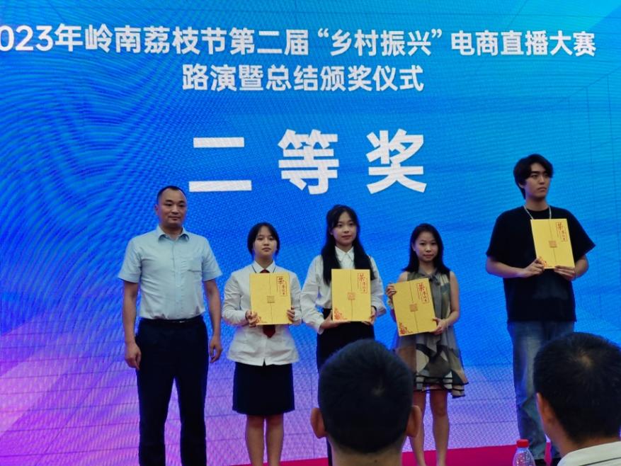 7月3日,由广东省科学技术厅指导,仲恺农业工程学院和京东物流集团共同承办的第二届岭南荔枝节“乡村振兴”电商直播大赛决赛暨总结颁奖仪式圆满落幕。来自全省12所院校的70支参赛队伍经过激烈角逐,决出了一、二、三等奖。其中,由经贸学院电商专业温泽豪、李佳莹、黄雅婵、周莹、陈彩艺5位同学组成的参赛队伍在电商专业教师夏瑜璟、邓妙悉心指导下稳定发挥,凭借出色的专业表现及强大的心理素质荣获本次比赛的二等奖。