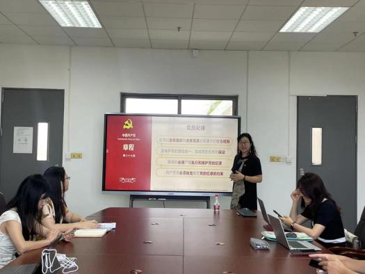 为深入学习贯彻习近平新时代中国特色社会主义思想和习近平总书记视察广东重要讲话、重要指示精神,深化自我革命,全面从严治党,根据学校印发的《2023年纪律教育学习月活动实施方案》的要求,9月4日下午,经济贸易学院教师第二党支部在白云校区1-304组织开展支部纪律教育学习月集中学习。会议由支部纪检委员李文婷主持,全体党员参加。