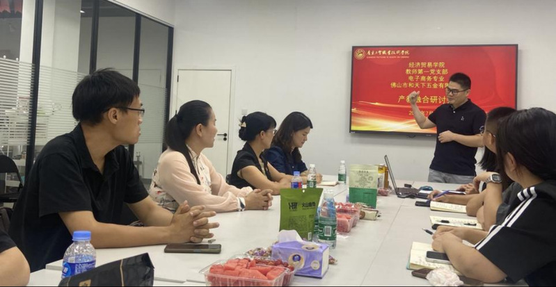 为深入推进产教融合协同育人机制,提升专业教师的实践技能,提高毕业生就业竞争力和就业率,暑期期间,在经贸学院党总支副书记、院长邱秀芳的带领下,由电子商务专业带头人方文超及经贸学院教师第一支部党员组成的调研小组赴佛山市和天下五金有限公司开展产教融合、校企合作方面的研讨与交流。
