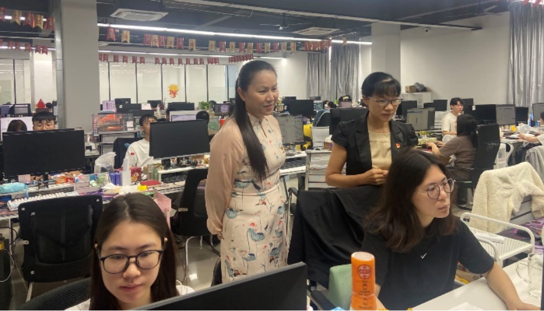 调研小组实地察看了企业的工作间、直播间等场所,对于企业的经营和发展方向有了一定了解。