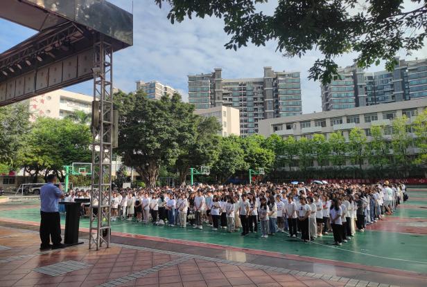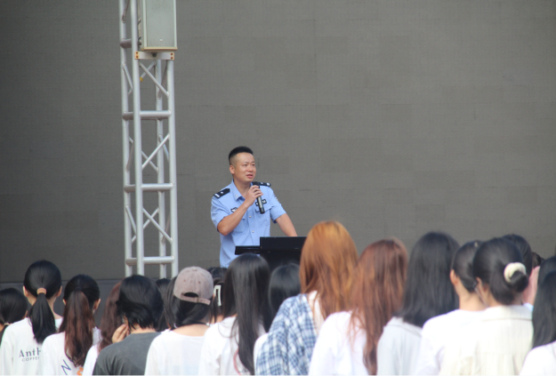 升旗礼毕,石围塘派出所刘警官应邀为全体师生进行了一场普法安全教育宣讲。他讲到,开学之际,许多高校大学生被诈骗事件频繁发生,多数为电信网络诈骗,他重点提醒同学们一定要看清诈骗的本质,牢牢记住“四个不”,即“不汇款、不轻信、不泄露、不链接”,注意保护好个人财产,提高法律意识。