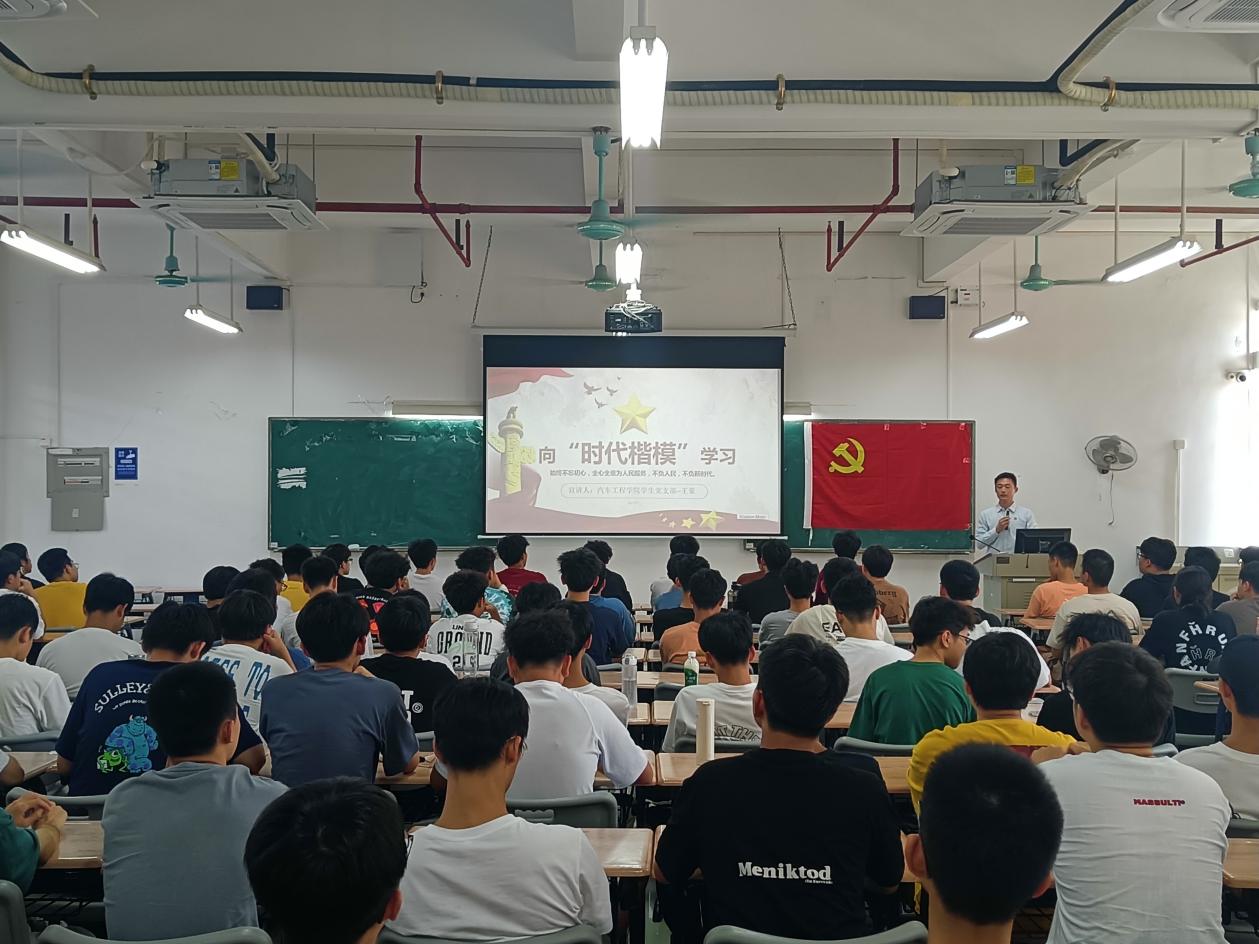 为了学习贯彻党的二十大精神,增强思想政治教育,加强党的相关知识的普及,9月19日下午2点,williamhill威廉希尔官网“学生党史宣讲团”成员王豪在明德楼2区402给23新能源3班和23新能源4班宣讲向时代楷模学习。