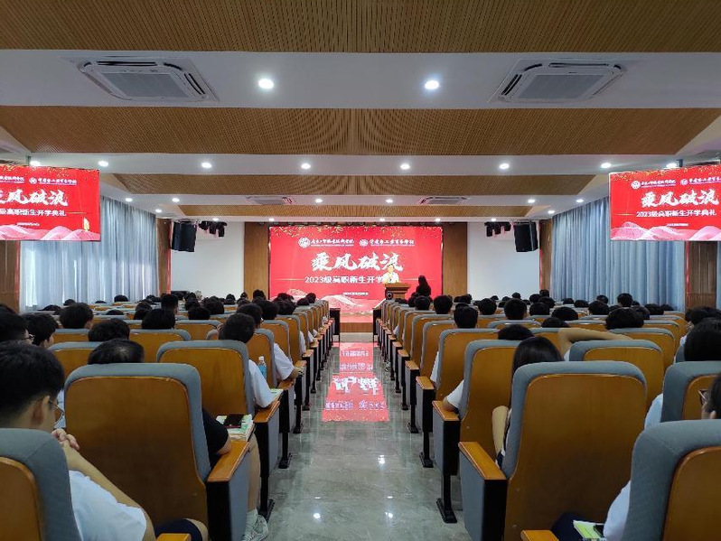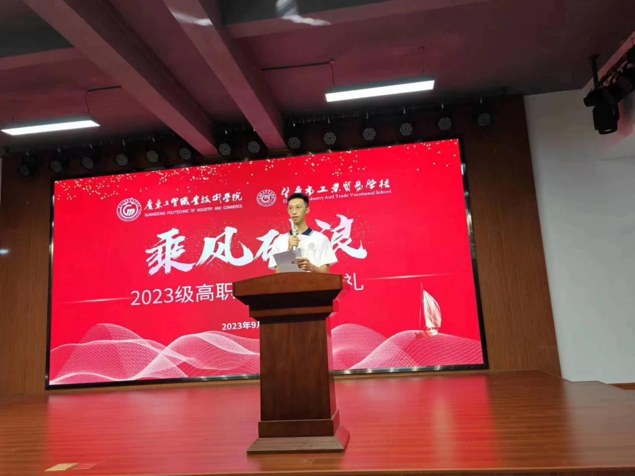 肇庆市工业贸易学校副校长陈志刚、经管部部长张洪荣、信息部部长黄伟、教务科副科长刘蓉黔、招生就业办副主任吕、高职管理部副部长陈云、企管组教研组长黄胜辉等领导老师,williamhill威廉希尔官网经济贸易学院院长邱秀芳、教务处副处长谭立霞、学生处副处长郭朝明、计算机学院副院长单家凌、艺术与教育学院副院长李小燕等领导老师,2023级高职班(广工贸)班主任5人,以及肇庆市工业贸易学校教学点计算机网络技术、电子商务、汽车电子技术、数字媒体艺术设计四个专业,一共251位高职新生出席本次开学典礼。