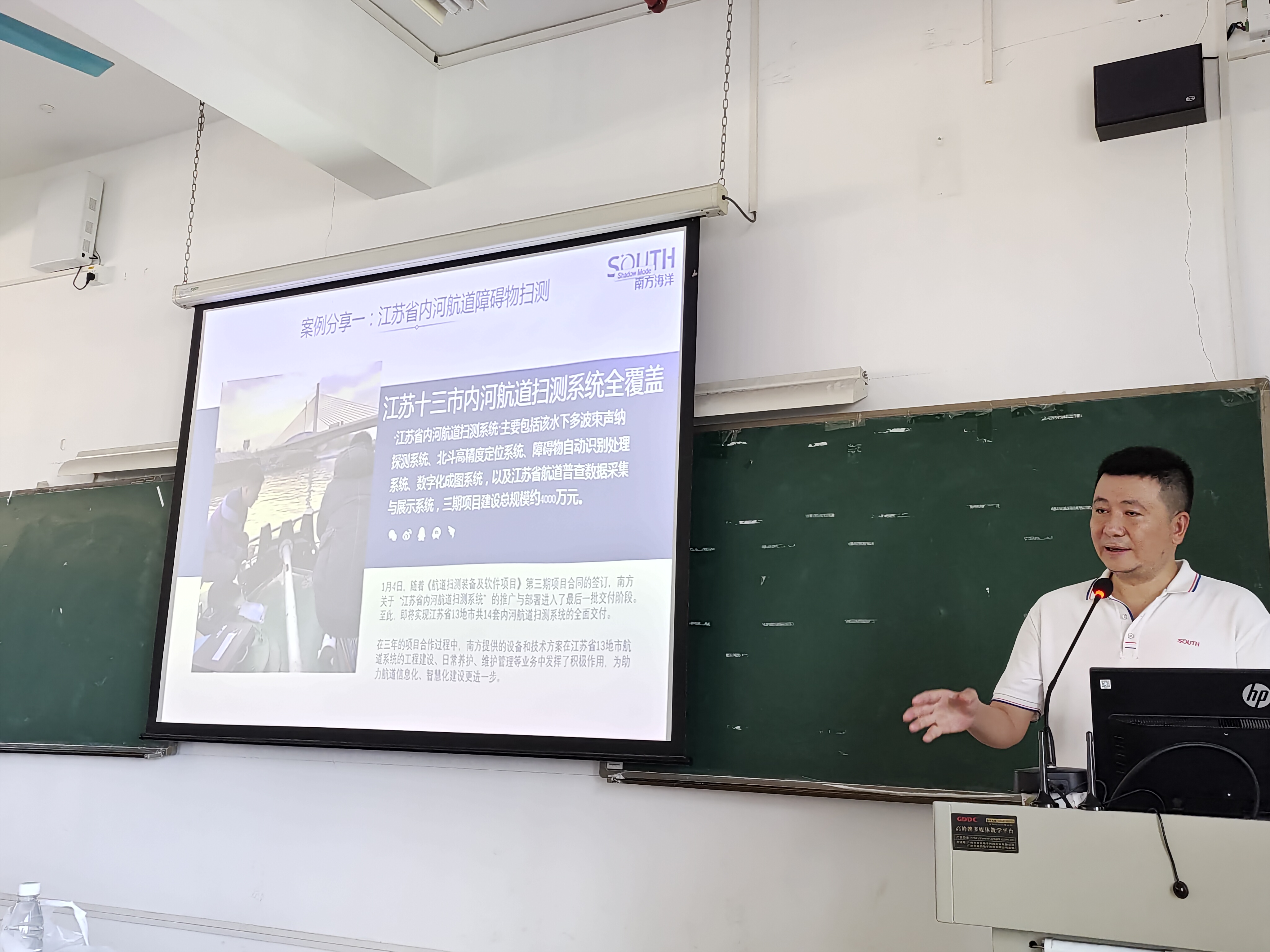 海洋测绘技术是测绘遥感信息学院工程测量技术和地理信息技术专业的一门专业特色课程,一直以来,海洋测绘的技能实践存在着投入大、海上安全保障难等难题。为了提升学生的实际动手能力,在课程理论讲授+虚拟仿真实训的基础上,依托广东工贸-南方测绘智能测绘产业学院,9月27日海洋测绘方向教学团队将南方测绘科技股份有限公司(以下简称“南方测绘”)广州分公司相关领域的技术骨干及其前沿的海洋测绘产品请进了《海洋工程和海域权属测量》、《海洋测绘技术》课堂。