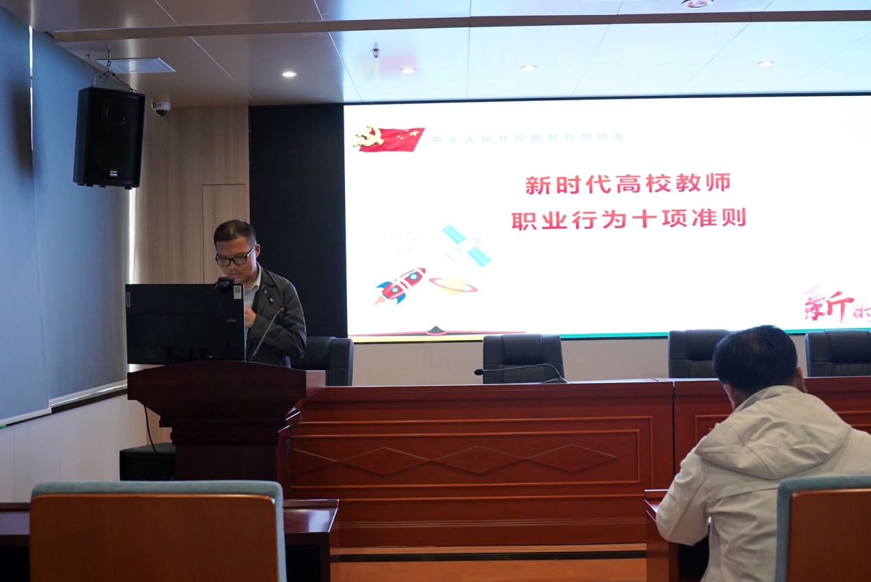 最后,学院党总支书记张宁对本次专题学习进行总结,肯定本次活动的成效,希望全体教师始终坚守为党育人、为国育才的初心与使命,用行动践行师德师风规范;同时张宁对近期学院的政治理论学习做了具体安排。