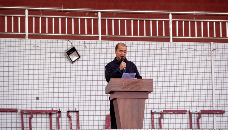测绘学院教师代表阳德胜发表国旗下讲话:鼓励全体师生应树立正确的价值观和人生观,培养良好的品德和道德修养,重他人,关爱弱势群体,传承中华民族的优秀传统文化,肩负时代使命,为实现中华民族伟大复兴的中国梦贡献自己的力量。测绘学院学生代表黄悦丹同学立足学生群体,倡导大家应当树立鸿鹄之志,朝着远大目标和远大梦想前进,不断追求卓越。