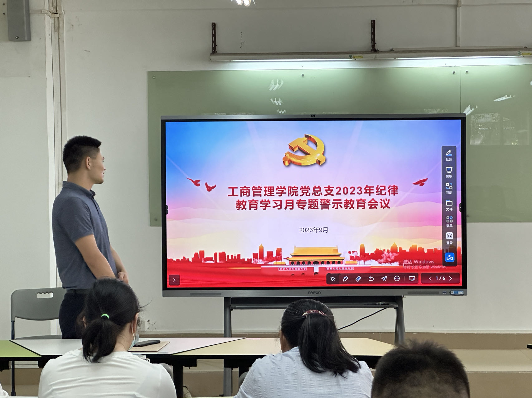 为进一步加强纪律教育,持续推进作风建设,9月26日,工商管理学院党总支在天河校区东区教学楼205召开了2023年纪律教育学习月专题警示教育会议,会议由工商管理学院党总支副书记谢宏祥主持,全体党员教师参加了会议。