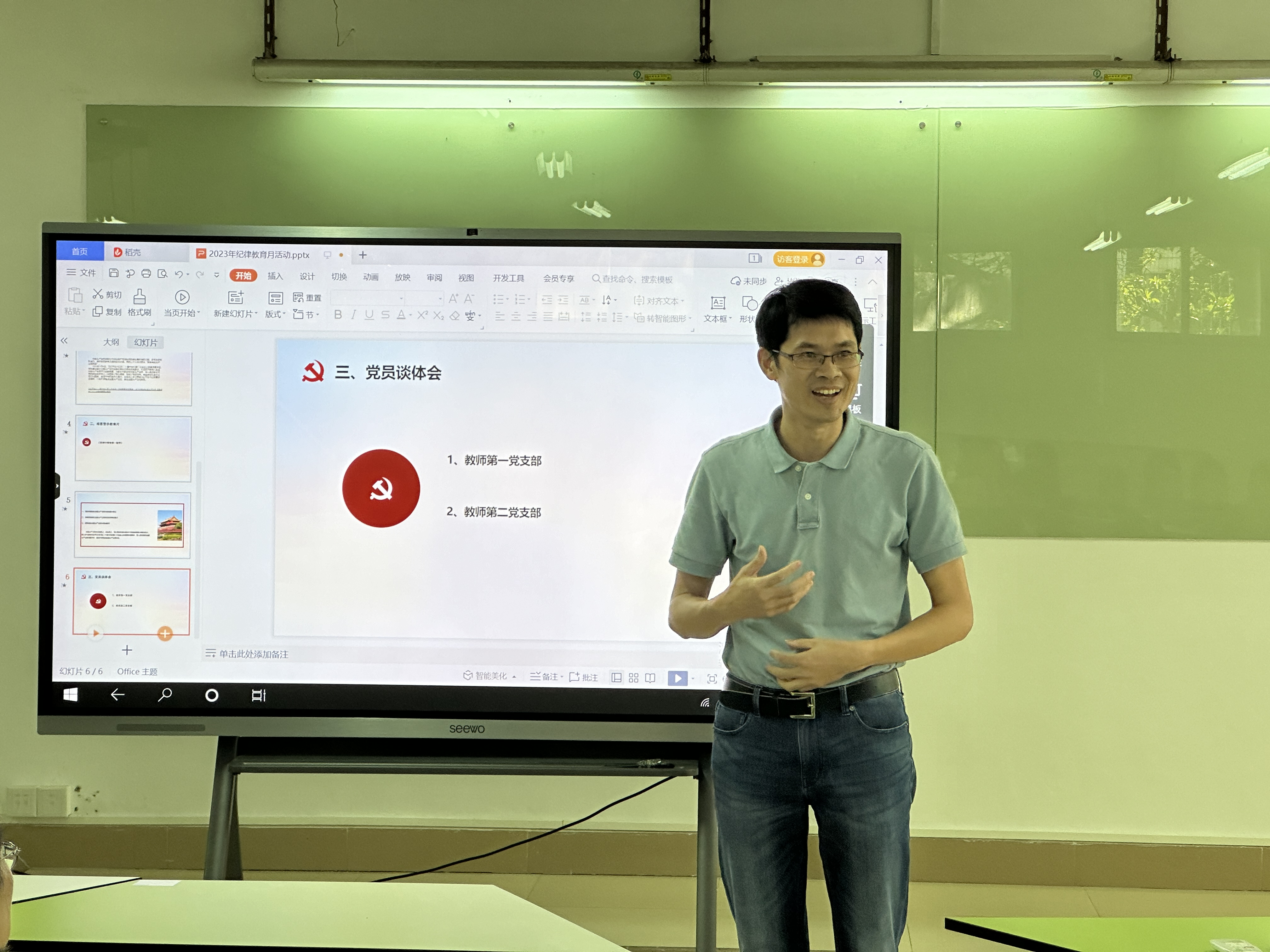 最后,谢宏祥向全体党员教师强调要充分认识纪律教育学习月活动的目的和意义,认真开展纪律教育宣传月活动,做到学习及时、方式灵活、形式丰富、特点突出,切实把纪律教育学习成果转化为工作动力和实绩实效。