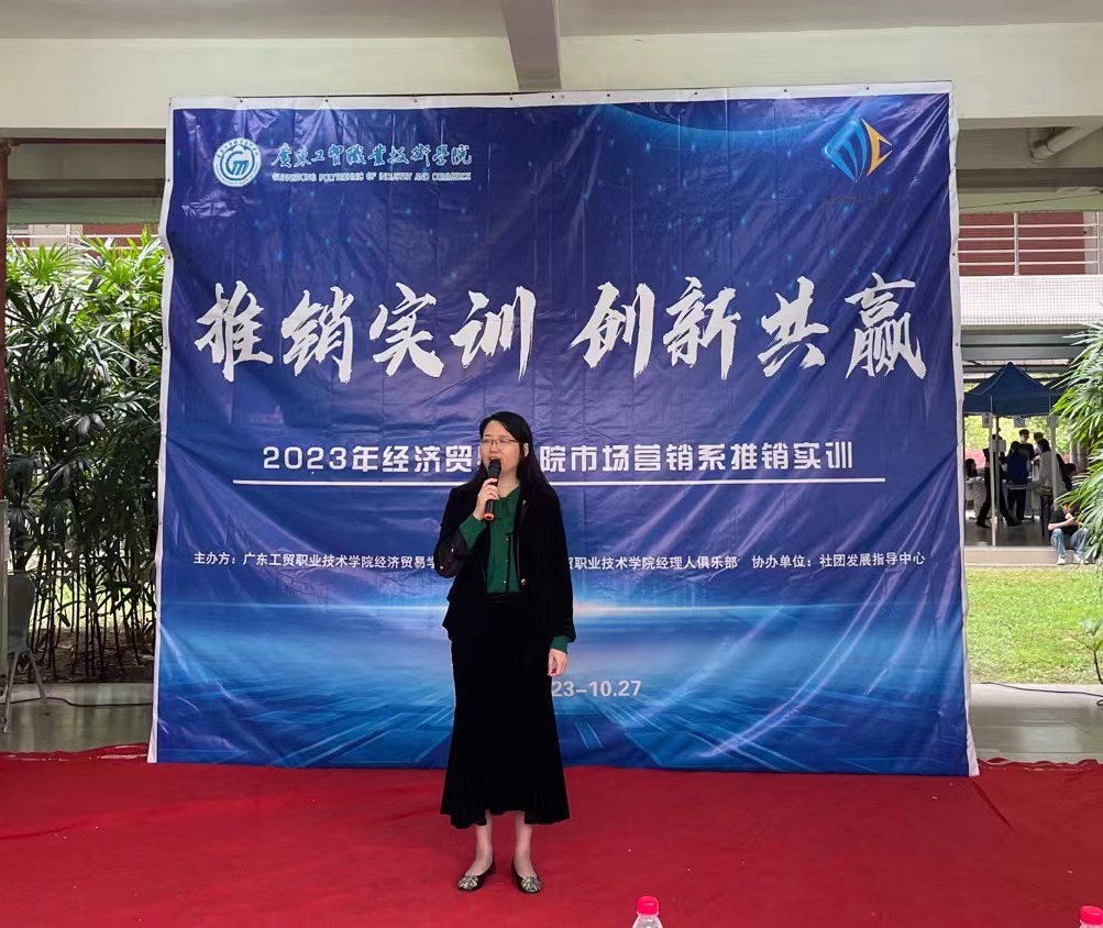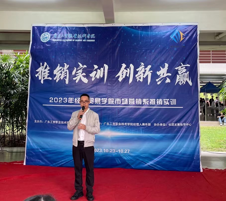 为了贯彻落实我系教学模式,强化专业技能培养,提升人才培养质量,进一步提高我系市场营销专业课程的实践性,激发学生学习兴趣。10月23日,经济贸易学院营销系再次迎来了一年一度的推销实训活动,并在工贸白云校区子勤3栋架空层举行了开幕仪式。参加开幕式的人员有经贸学院副院长蒋晶,营销系主任严琳,市场营销专业带头人黄华乾,骨干教师彭娟教授,易正伟副教授,杨海娜,廖文芳,何志伟,魏湘辉,黄伊宁,梁艳,邓颖仪,明秀娴,杜耀国,黄卉老师等。本次活动由williamhill威廉希尔官网经济贸易学院主办,经理人俱乐部协办。