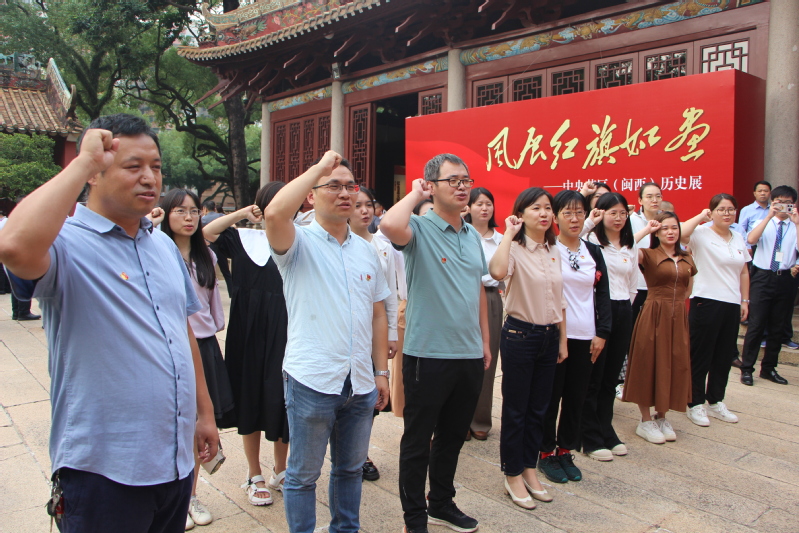 农讲所参观结束后,学院教师党员重温了入党誓词。由测绘工程系副主任杜向锋领誓,在革命英雄精神的感召下,大家在党旗前庄严宣誓。这既是重温当年的决心和信念,也是对日后行动的鞭策和激励,做到与时俱进、恪守承诺。