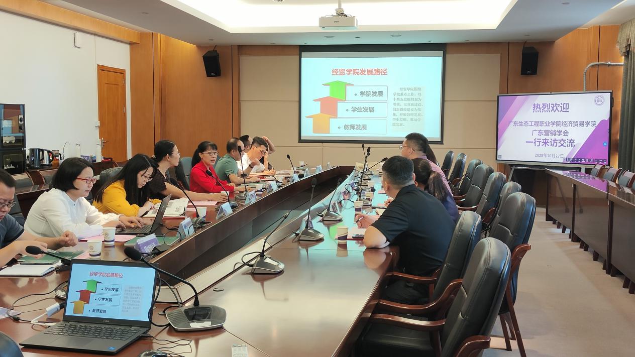 为学习贯彻习近平新时代中国特色社会主义思想,进一步优化人才培养方案。10月27日上午,广东生态工程职业学院经济贸易学院总支书记兼院长尹冬梅、副院长白华艳、王飞;广东营销学会秘书处常务副会长兼秘书长张珀维、副秘书长蔡途绵等一行到访威廉希尔官网进行交流座谈。威廉希尔官网经济贸易学院院长邱秀芳,质量管理与评估中心督导钟润萍,副院长蒋晶、市场营销带头人黄华乾,跨境电商专业负责人陈建兰以及辅导员陶智祥热情接待。三方于明德楼1-201会议室举行座谈会,会议由邱秀芳院长主持。