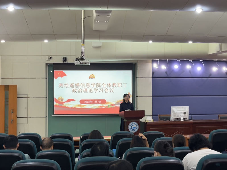 11月7日下午,测绘遥感信息学院在天河校区西区报告厅召开全体教职工政治理论学习会议,会议由测绘学院党总支副书记李元同志主持,测绘学院全体教职工参加会议。