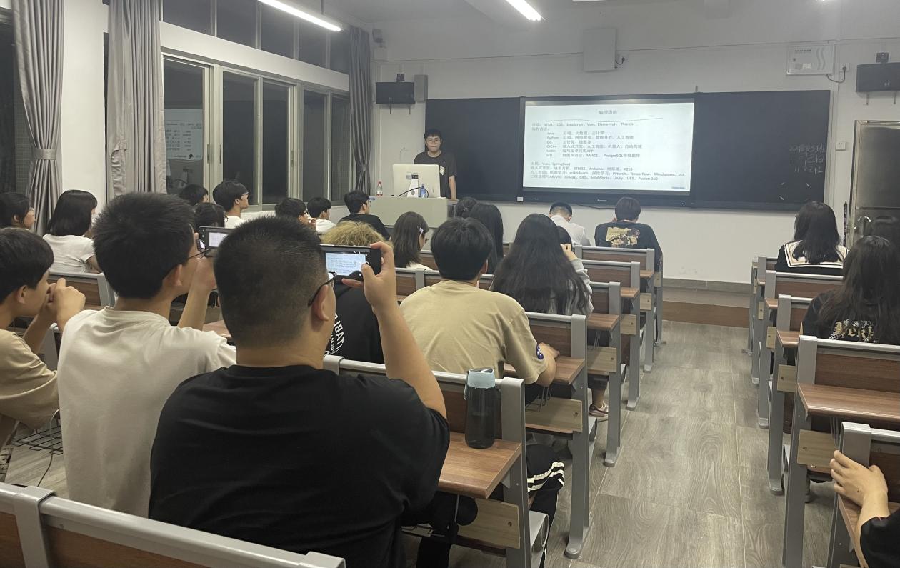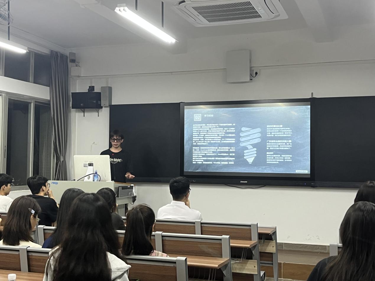 拥有丰富实践经验的21软件技术1班郑泽铨与现场同学分享他在社会实践方面的所感所悟,他强调要深知课后自律的重要性,不断夯实基础并勇于实践。