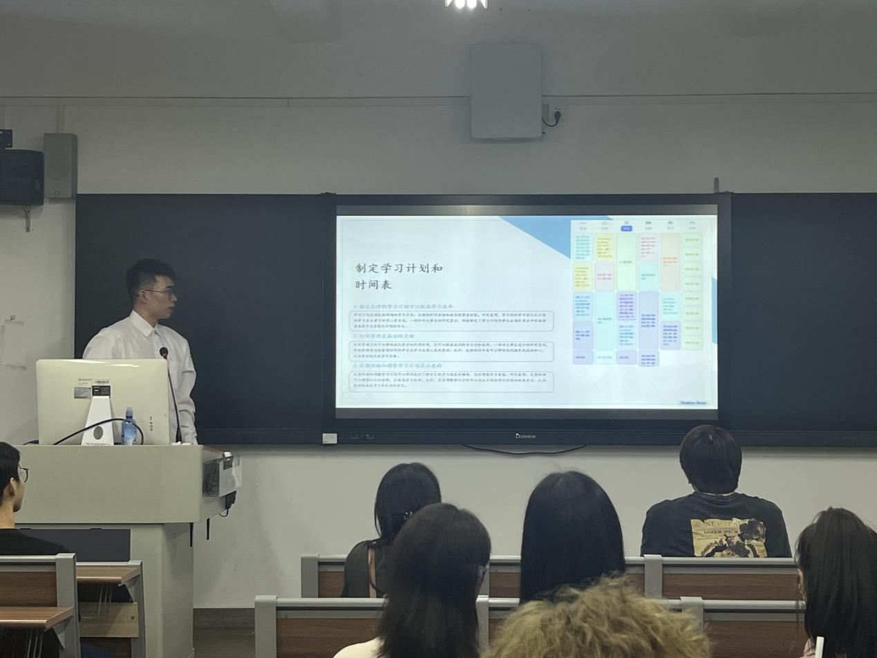 交流会首先由荣获2022-2023学年国奖奖学金奖项的四位优秀学生分别从科研、学术、思想与实践四个方面分享个人所获成绩及心得体会。
