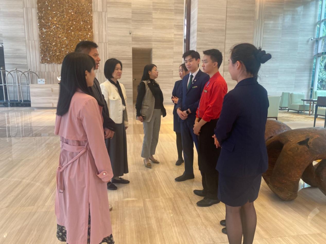访企拓岗第二站:广州保利假日酒店与我院系长期合作伙伴,本次前往酒店调研,深入市场前端动态和企业发展需求,了解当前酒店服务行业的多元发展,根据发展和服务方向优化人才培养和达成产教融合,为进一步达成现代学徒制的新合作模式等方面展开深入交流与探讨,并达成初步合作意愿。学院领导一行到酒店各个岗位看望了2021级旅游英语专业在岗实习学生,了解同学们在酒店的实习情况,关心他们的学习与生活等,同时鼓励同学们珍惜实习机会,不断加强自身能力提升,争取圆满完成实习任务。