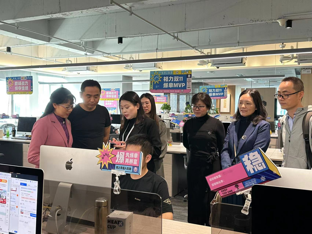 在企业方带领下,大家参观了公司的各个业务部门,包括产品中心、客服部、电商直播室等,深入介绍了企业的运营模式和电商服务方式,令教师代表们感受到了客服岗员工在双十一期间的热情周到、耐心细致的良好职业风貌。