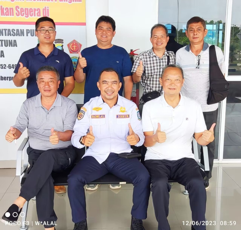 考察团在廖内群岛与当地县长合影(前排左2为县长)