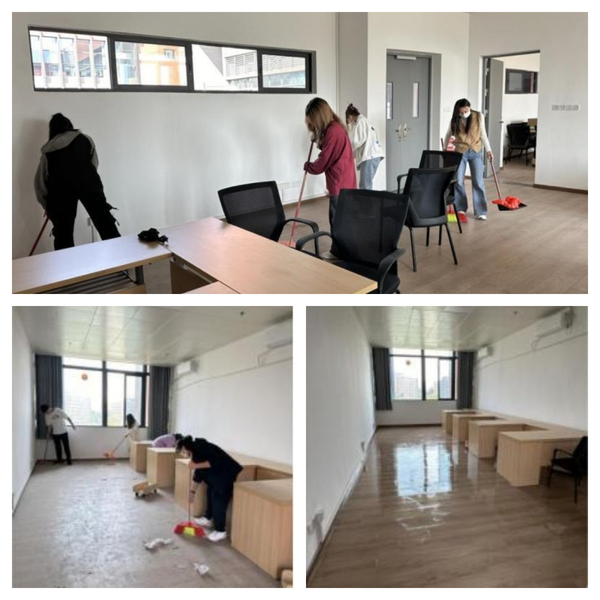 发展对象分小组分别负责图书信息楼2区3-5楼测绘学院新办公区域的清洁工作。在劳动过程中,他们带着饱满的热情和认真的态度参与到活动中,分工明确、互帮互助,一丝不苟地清扫灰尘,擦拭桌面,展现了吃苦耐劳、乐于奉献的精神风貌。同时也在劳动实践中实现了自己的社会价值,增强了社会责任感。
