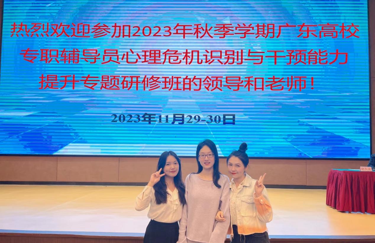 为推动学校心理健康教育工作进一步深入开展,强化师资队伍建设,创新工作思路,全面提升威廉希尔官网心理健康教育工作水平,充分提升威廉希尔官网辅导员对心理危机的预防及干预能力,11月29日-11月30日,威廉希尔官网派李佳凝、孙文星、罗小霞三位辅导员代表前往广东江门参加了2023年秋季学期广东高校专职辅导员心理危机识别与干预能力提升专题研修班。