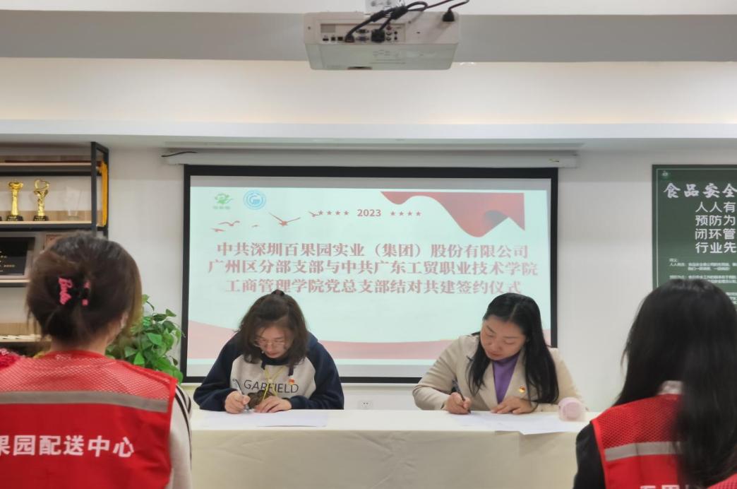 在双方参加人员的共同见证下,工商管理学院党总支部与深圳百果园实业(集团)股份有限公司广州区分部党支部签订了结对共建协议。双方就党建结对展开了热烈的交流,分享了想法和经验。大家一致认为,通过搭建校企双方结对共建平台,创新运用“党建+校企合作”新模式,未来在思想政治引领、基层组织建设、志愿服务活动、党员联合培养、品牌特色活动等方面开展深入合作,全面推进基层服务型党组织建设,努力实现“资源共享、党建共做、优势互补、协调发展”的基层党建工作新格局。