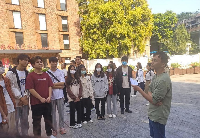 在中共三大会址纪念馆前,蒋腾予老师为师生们开展了现场教学。他以“为什么中共三大会址选在广州?”为题引发同学们的思考。然后,从当时国内的革命形势出发,向同学们介绍了中共三大会址选在广州的原因。同时,蒋腾予还对中共三大代表的产生办法以及代表们的办公场所和会议议程进行了详细的说明。