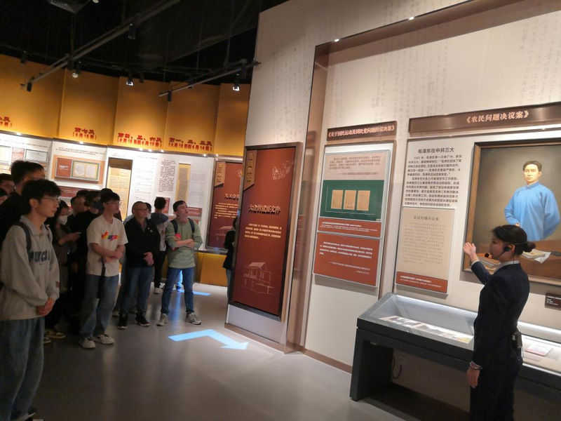 在听完现场教学之后,师生们跟着场馆讲解员的步伐对场馆内的文物和资料进行了参观。在讲解员声情并茂的讲解中,师生们的思绪好像又回到了那个激情澎湃的革命岁月。瞻仰着眼前的一件件历史文物,抚摸着代表们用过的器件,好像历史就发生在眼前,同学们对革命前辈们的精神境界和忘我情怀所深深感染。