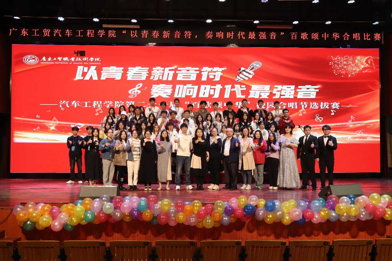 为聚焦弘扬中国精神、构筑中国价值、凝聚中国力量,培养广大青年的高尚情操,激发学生的青春活力和集体精神,为每位学子提供艺术实践的舞台,2023年12月7日,汽车工程学院在白云校区演艺厅举办第二十一届“百歌颂中华”校园合唱节选拔赛,本次选拔赛的主题为“以青春新音符,奏响时代最强音”。学院22、23级同学以班级为单位参加了本次比赛,汽车工程学院党总支书记彭卫东、党总支副书记欧敏和全体辅导员出席活动并担任评委。