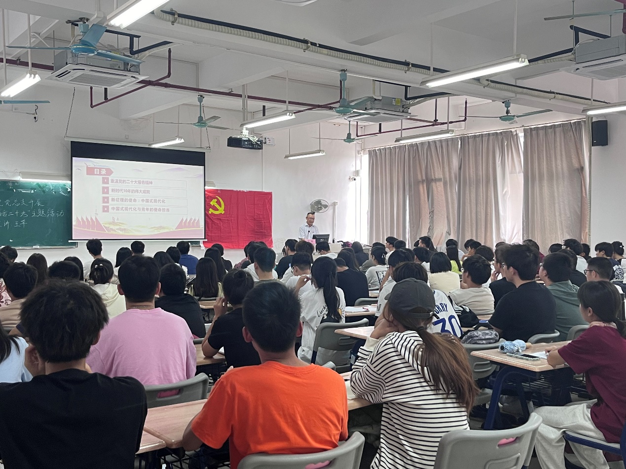 为深入学习贯彻党的二十大精神,充分发挥“五老”亲历者、见证者、实践者的优势,向广大青年学生讲好党的二十大提出的对党和人民事业具有重大现实意义和深远历史意义的三件大事,教育激励广大青年学生以爱国主义为核心,固本培元、凝心铸魂,在新征程上以传统革命精神立志做有理想、敢担当、能吃苦、肯奋斗的新时代好青年。机电工程学院党总支于12月12日下午在明德楼2-402开展主题党课。活动邀请王平教授作为主讲嘉宾,与机电青年学子面对面共话党的二十大,本次活动由梁超鹏主持,机电工程学院学生第二党支部党员、发展对象、积极分子共计104人参加。