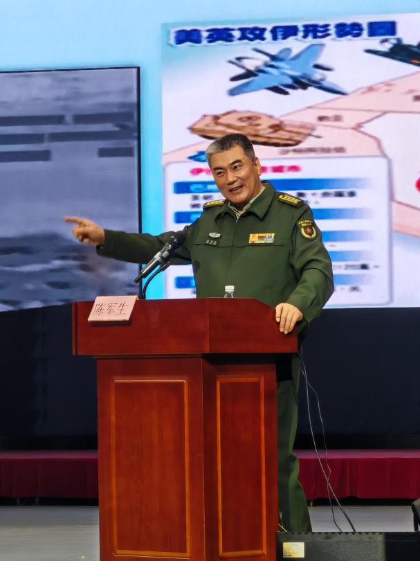 陈军生大校生动地为师生讲解国防知识