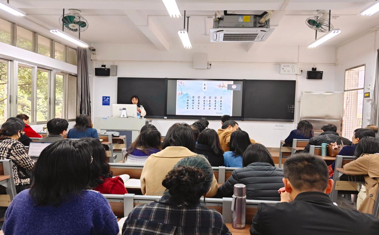 教师说课齐上阵。黄丽瓶老师就《中华优秀传统文化概论》第二章“中国古代文学传统”进行了说课,从课程设置、教材分析、学情分析、教学设计等方面进行,重点介绍了教学设计,从“诵”、“品”、“创”、“玩”四个环节进行课堂组织。张薇薇老师就第三章“中国古代史学传统”介绍了教学设计,包括史学的脉络梳理、重点作品学习赏析和历史知识小游戏互动。潘水萍老师就第四章“中国古代哲学传统”分享自己的教学经验,指出中华优秀传统文化植根于每个中国人身上,课堂应该讲清楚中国人,以习近平新时代中国特色社会主义思想为指导,结合社会现实和生活实例,教学要突出思政课特色。辛玲玲老师就第五章“中国古代宗教传统”讲了自己的教学设计,同时提出了自己备课中的困惑和疑难。
