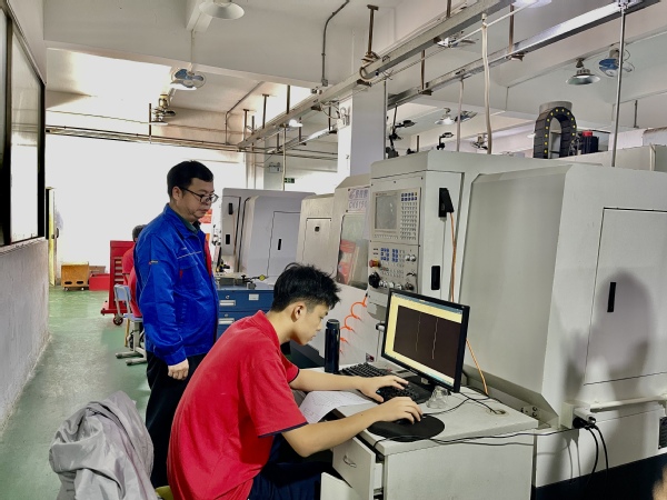 在宝安职业教育集团第二校区相关负责人的陪同下,邵超城一行参观了中职学校的实训基地和教学设施。他们详细了解了实训基地的硬件配置、实践教学体系以及与企业合作开展技能训练的情况。同时,还与正在上课的学生进行了亲切交流,了解他们现学课程内容和技能水平。