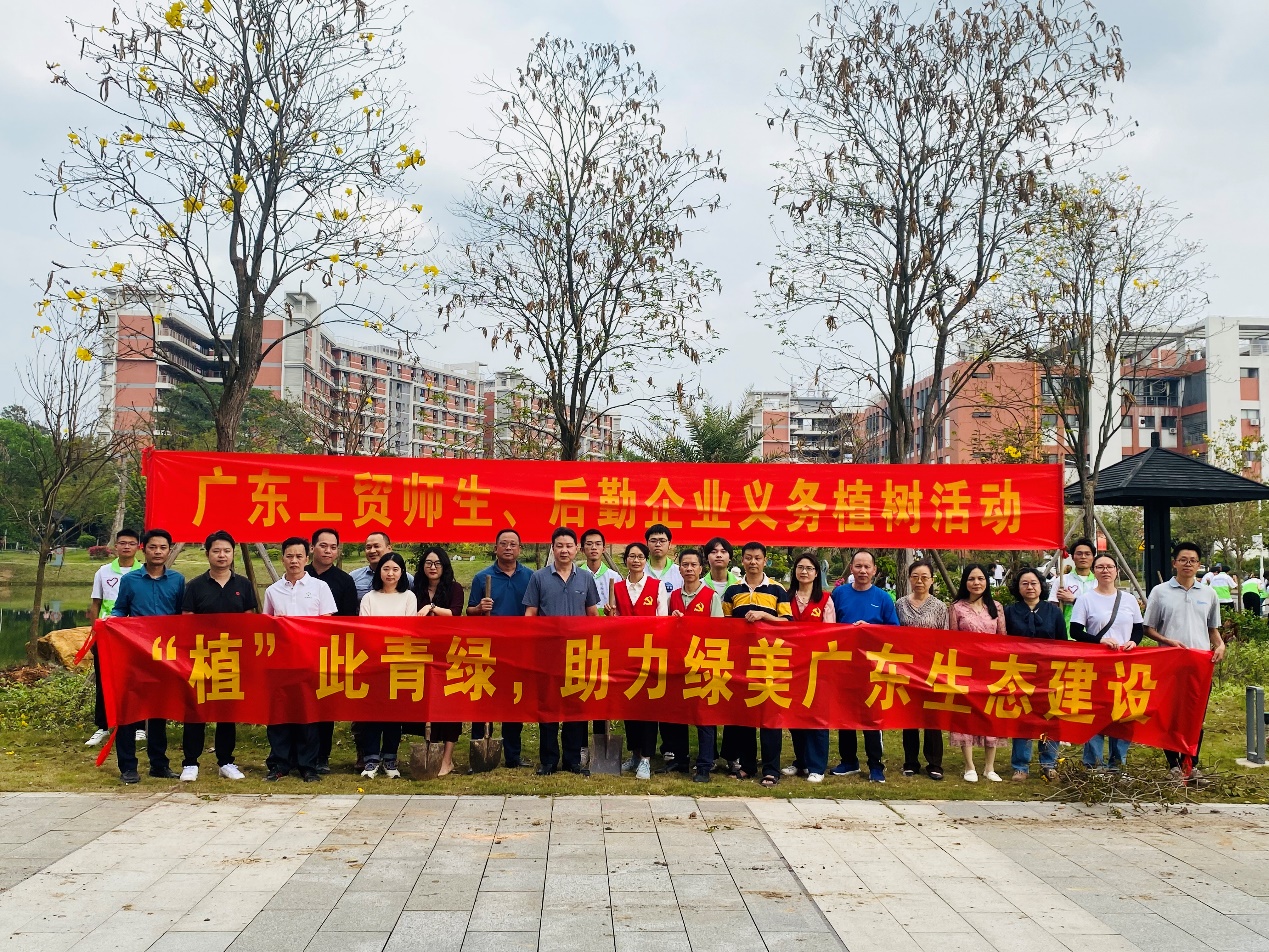 为深入贯彻落实习近平生态文明思想,筑牢树立和践行“绿水青山就是金山银山”的理念,助力推进绿美广东生态建设,3月29日下午,学校总务处、钟落潭镇高职园区社区和学校后勤服务企业在白云校区图书信息楼湖边草坪开展“后勤‘植’此青绿,助力绿美广东生态建设”义务植树活动。学校党委委员、副校长孙师家同志、总务处临时负责人曾庆生、钟落潭镇高职园区社区党支部冯晋碧书记、后勤服务企业代表和学校团委志愿者一起植下88株黄花风铃木树,为工贸校园再添新绿。