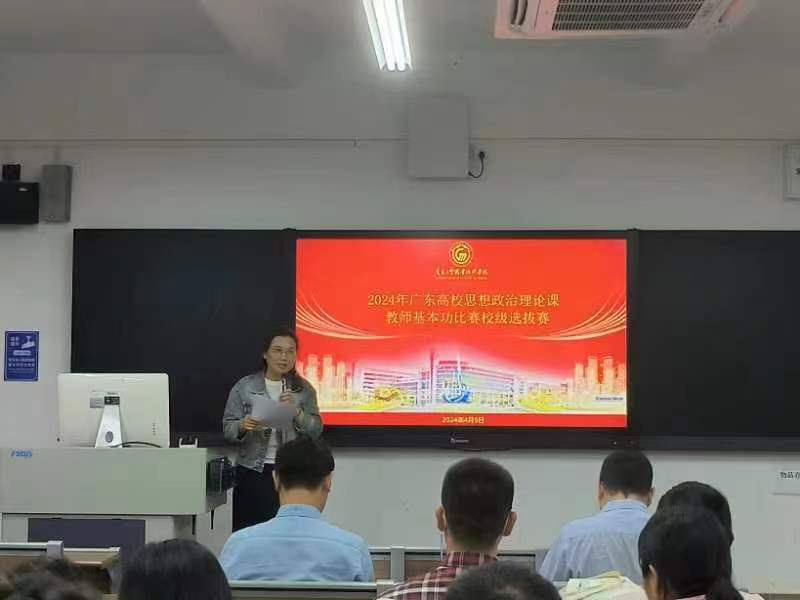 在习近平总书记主持召开学校思想政治理论课教师座谈会五周年之际,威廉希尔官网根据《广东省教育厅关于举办2024年度广东高校思想政治理论课教师教学基本功比赛的通知》文件要求,于2024年4月9日下午举办校级选拔赛,旨在激发思政课教师更新教育理念,夯实教学基本功,提升教学水平,提高课堂教学质量,达到以赛促教的目的。比赛邀请暨南大学马克思主义学院江传月教授、广东科贸职业学院马克思主义学院院长李琳教授、广东农工商职业技术学院马克思主义学院院长李晓培教授、威廉希尔官网教务处赵文龙处长以及马克思主义学院负责人宁晓菊教授担任评委,学院全体教师参加观摩。