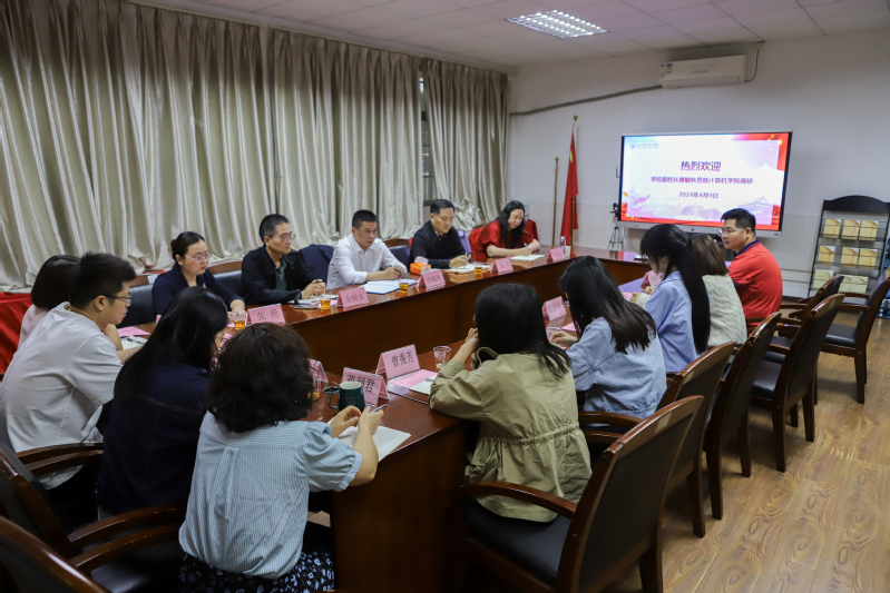 为落实立德树人根本任务,打造辅导员队伍建设,营造三全育人良好氛围,推动学生工作高质量发展,4月9日,学校党委委员副校长唐毓秋深入计算机学院开展辅导员队伍建设、一站式学生社区建设、学生成长和就业工作推进的调研,参会人员有学生处副处长许斯华,计算机学院党总支书记张宁、院长余棉水、党总支副书记张艳及全体辅导员,会议由张宁主持。