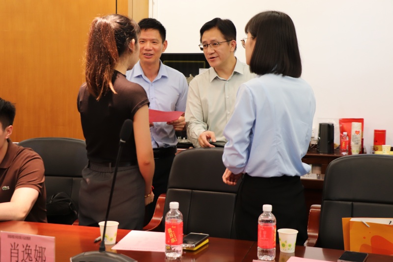 本次访企拓岗交流座谈会邀请了深圳市元创品牌管理有限公司总经理马永明,广东顺博创意产业孵化器有限公司总经理朱凯明,广东顺博创意产业孵化器有限公司负责人林倩欣,佛山领拓跨境电子商务有限公司董事长张中平,佛山领拓跨境电子商务有限公司商务总监沈锐志,广州大匠电子商务有限公司总经理肖鸣声,广州汉捷供应链管理有限公司总经理邝皓宇,深圳泰利联合科技有限公司总经理助理肖逸娜,深圳泰利联合科技有限公司人事处谌鑫霞出席本次会议。刘贻新对参会企业代表表示热烈欢迎并与企业代表亲切面谈,现场气氛轻松愉悦。