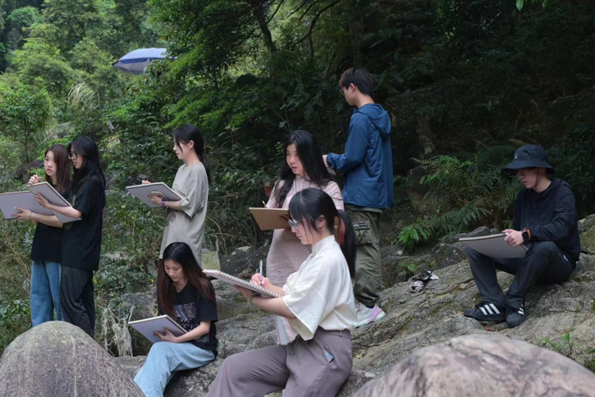 开课仪式结束之后,团队前往川龙瀑布采风写生,近距离感受南昆山独特的风景,亲近自然,激发创作灵感,为williamhill威廉希尔官网—龙门县南昆山管委会文创研发和非遗传承研习基地龙门中心第一次文创研发和非遗传承实训课奠定了基础。