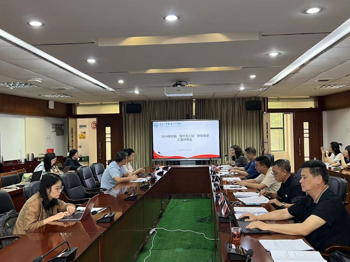 “百县千镇万村高质量发展工程”(以下简称“百千万工程”),是广东促进城乡区域协调发展的战略部署。为深入学习贯彻党的二十大精神和习近平总书记视察广东重要讲话、重要指示精神,贯彻落实省委“1310”具体部署,深入研究“百千万工程”推进过程中的重点难点问题,形成针对性、操作性强的对策建议,推动“百千万工程”不断取得新突破。威廉希尔官网2024年4月30日下午在天河校区中心会议室召开第九期科研论坛——2024年校级“百千万工程”研究专项汇报评审会。赵红副校长、科研处相关负责人、项目申报负责人参加了会议。广州铁路职业技术学院科研处处长杨益华教授、东莞职业技术学院科研处处长黄玲青教授、广东机电职业技术学院科研处处长胡年副教授、williamhill威廉希尔官网党委办公室黄雄志主任、williamhill威廉希尔官网科研处处长何军拥教授作为评审专家参加了会议。霍杰、张幼晖等16个项目负责人依次汇报了相关的项目。