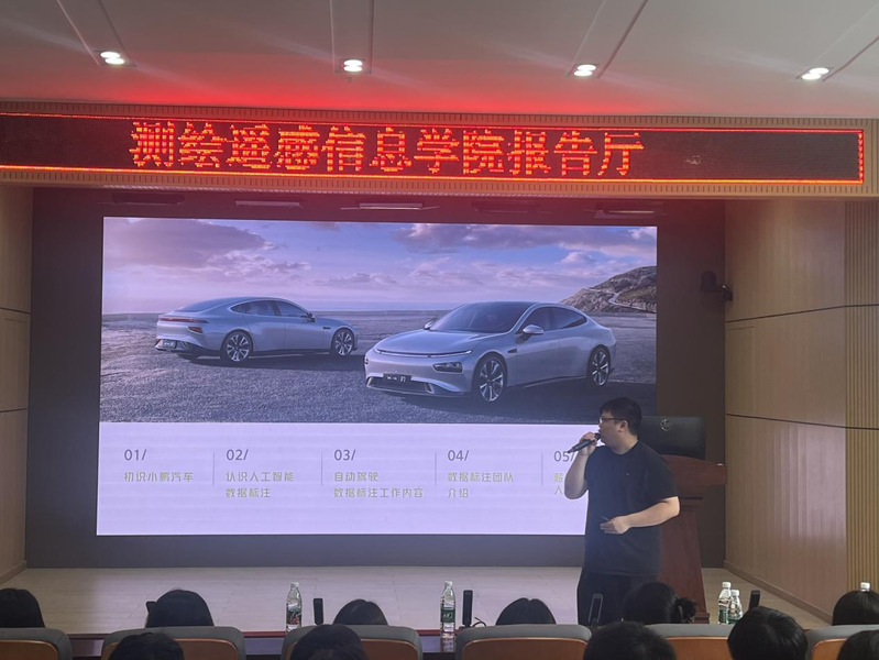 会上,小鹏汽车自动驾驶数据标注业务负责人潘智文通过PPT演示详细介绍了公司的基本情况、业务领域、文化背景、发展前景、晋升机制、工作岗位需求,并且向参会学生展示小鹏汽车自动驾驶功能的相关视频,让大家对小鹏汽车的自动驾驶技术有更直观的了解。接着,潘经理详细阐述小鹏汽车在数据标注方面的独特技术,并通过对比2D数据标注和3D数据标注的差异,展示小鹏汽车在研发技术上的创新和领先地位。同时,潘经理提到小鹏汽车对数据标注人才的需求正在不断增长,为学生们提供广阔的就业前景。在人才培养方面,潘经理表示,小鹏汽车高度重视实习生培养,为确保实习生在小鹏汽车得到专业技能的培养和综合素质的提升。